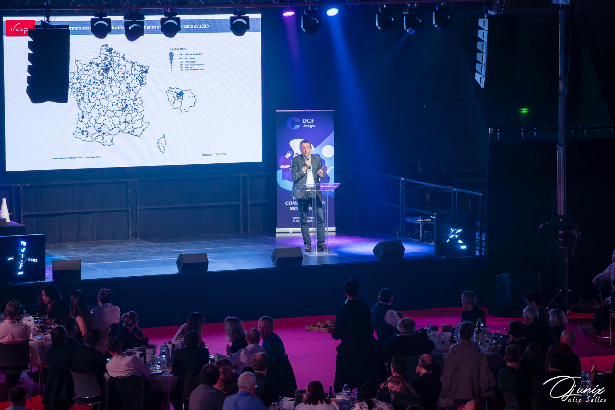 8eme soirée DCF Prestige au Palais des sports de Limoges avec la conférence de Jérôme Fourquet « Les métamorphoses Françaises » et la remise du trophée du manager commercial Haute-Vienne 2025 à Olivier Lafarge PDG de Minerva Oil